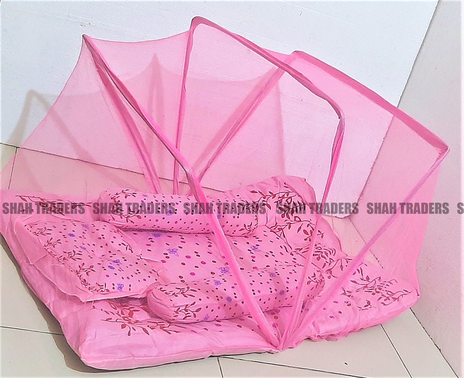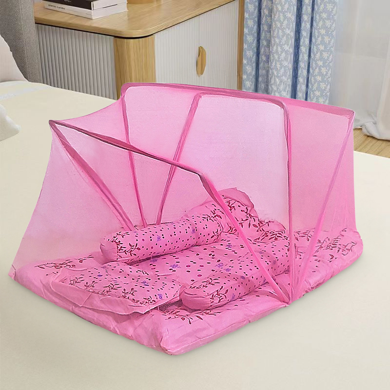 Product Type: Bed with Mosquito Net and Pillow Color: Multi-Color Good Quality Product For Baby. Product Type: Bed with Mosquito Net and PillowColor:Pink, Multi-Color(Randomly)Mosquito net fabric design or print may vary slightly depending on stock availability. Quality will remain the same.Good Quality ProductSoft & skin-friendly fabricFor Baby.Easy to fold and carryApprox. size: 28 × 18.5 inches (±1.5 inches)Note: Actual size may vary by ±1.5 inches due to manual cutting and finishing.